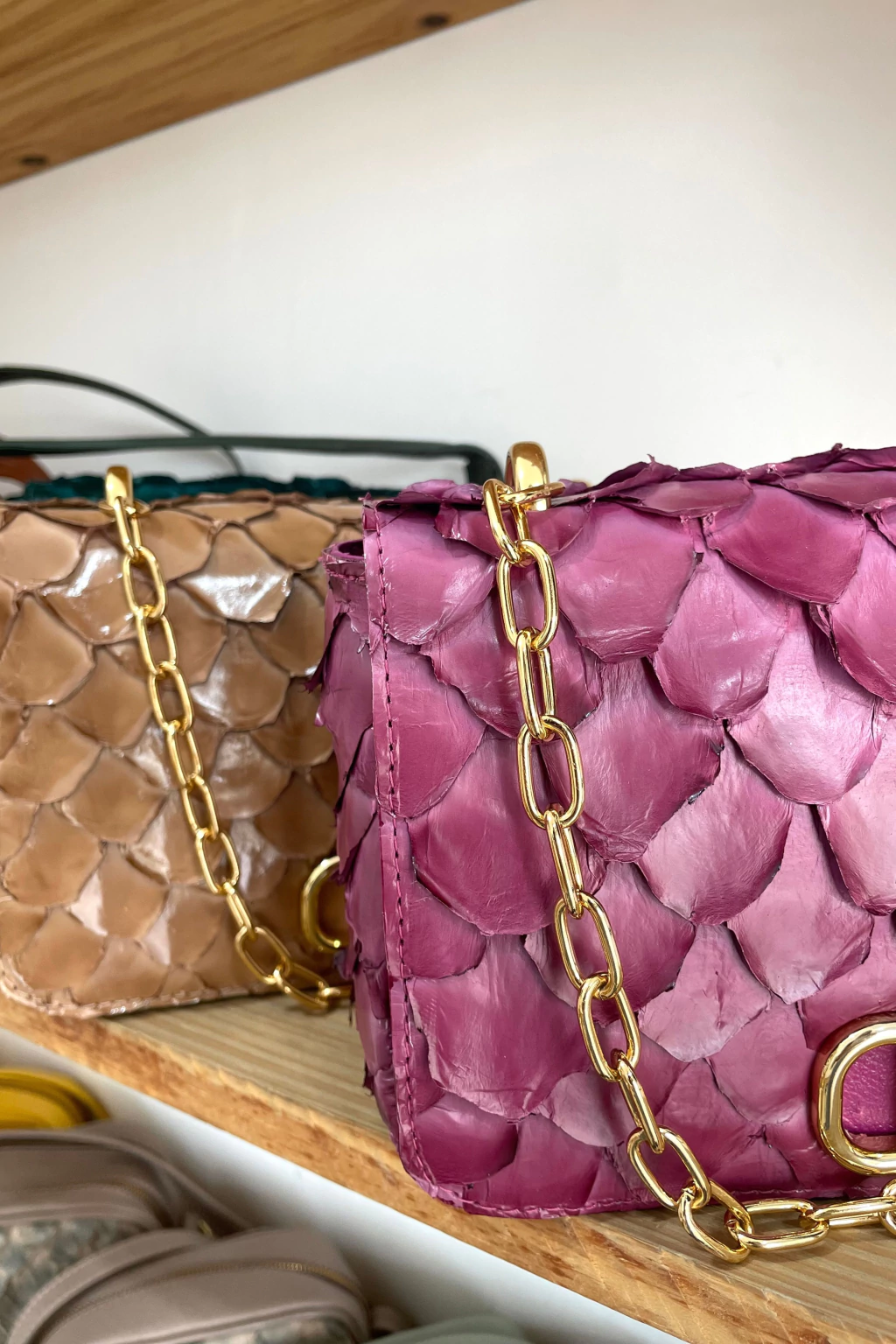 A Bolsa AURORA é um dos nossos lançamentos apaixonantes no couro de pirarucu!
